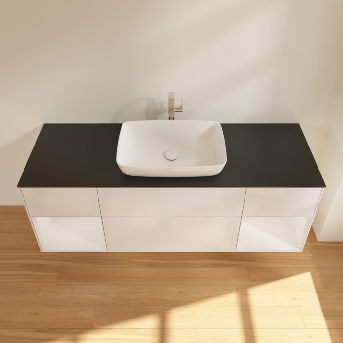 t Раковина finion -lected " . де розмістити всі предмети, які вам потрібні щодня у ванній? Willery & Boch Washbasins пропонують практичне та компактне рішення цієї проблеми і дозволяють легко переглянути порядок навіть у найменшій ванній кімнаті. Завдяки тумбочці під раковиною від Villeroid & Boch, все, що вам потрібно, завжди буде під рукою, прямо під мийкою у ванній кімнаті.