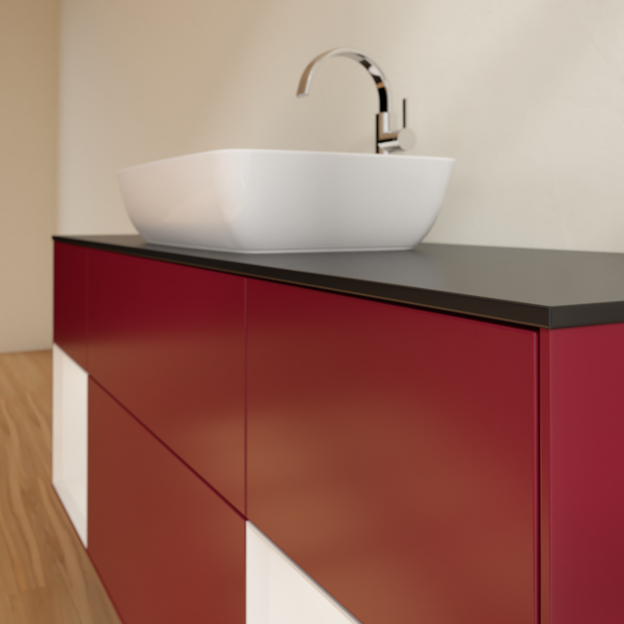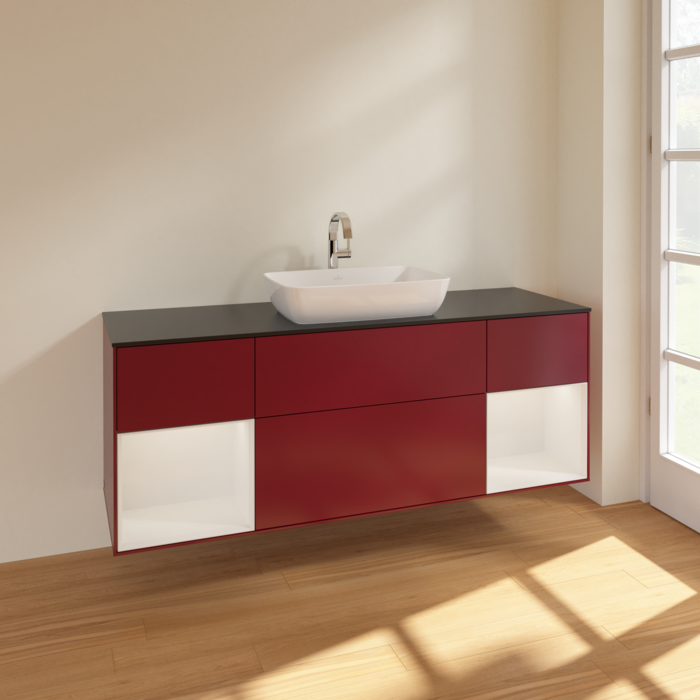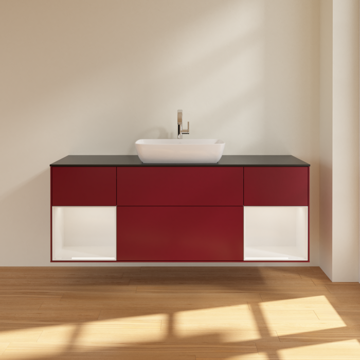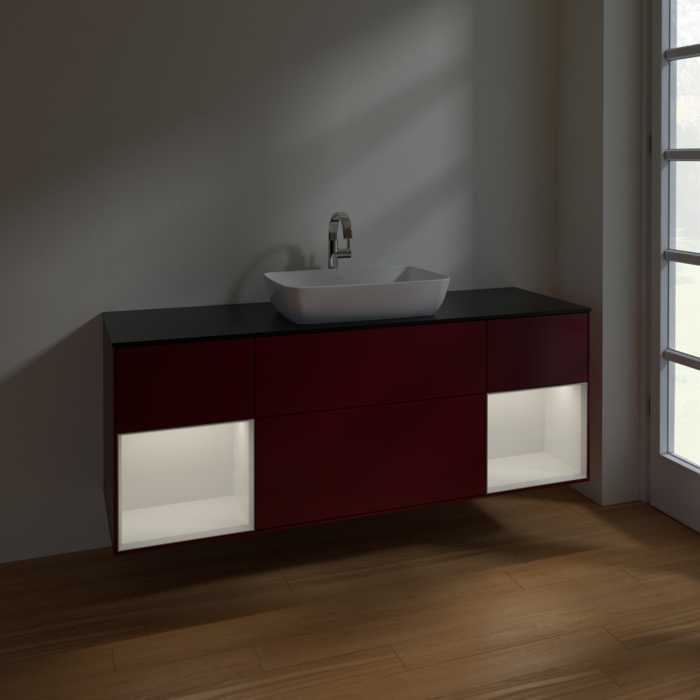 Тумба під раковину Villeroy & Boch Finion 160х50,1 см з підсвічуванням МДФ півонія матовий лак/скло чорне матове F862GFHB