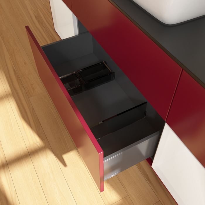 практичні внутрішні розділи. подані внутрішні перегородки у ванних кімнатах для влаштувань та Boch можуть індивідуально підтримувати замовлення у ванній кімнаті. Різні елементи, такі як регульовані скляні розділи та коробки дляАксесуари різних розмірів, надайте порядок та хороший огляд. Завдяки практичним внутрішнім розділам ви можете знайти часто використовувані аксесуари для ванної кімнати на перший погляд.
