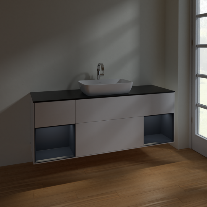 Тумба під раковину Villeroy & Boch Finion 160х50,1 см із підсвічуванням МДФ білий матовий лак/скло чорне матове F862HGMT