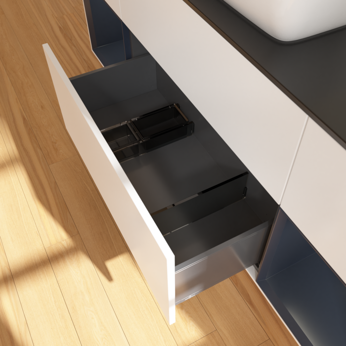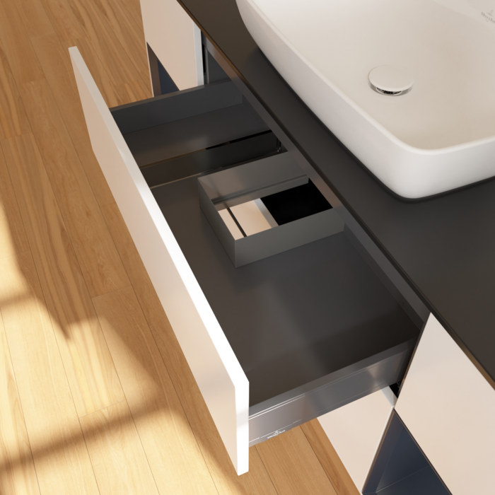 push-to-opeen Technology для максимальної зручності . технологіяПуск до відкриття у меблях для ванної кімнати Villeroy & Boch робить ваше повсякденне життя неймовірно легким. Фасади без ручок виглядають особливо елегантно, і завдяки технології, що відштовхується, їх можна легко відкрити та закрити з мінімальним тиском.