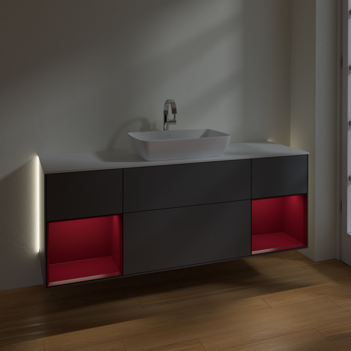 Тумба під раковину Villeroy & Boch Finion 160х50,1 см із підсвічуванням МДФ антрацит матовий лак/скло біле матове G861HBGK