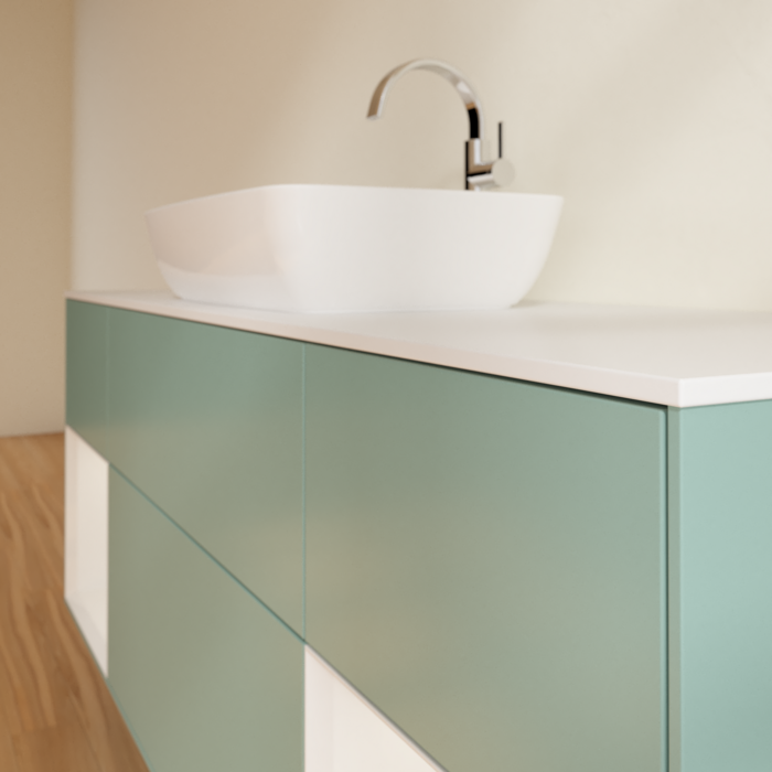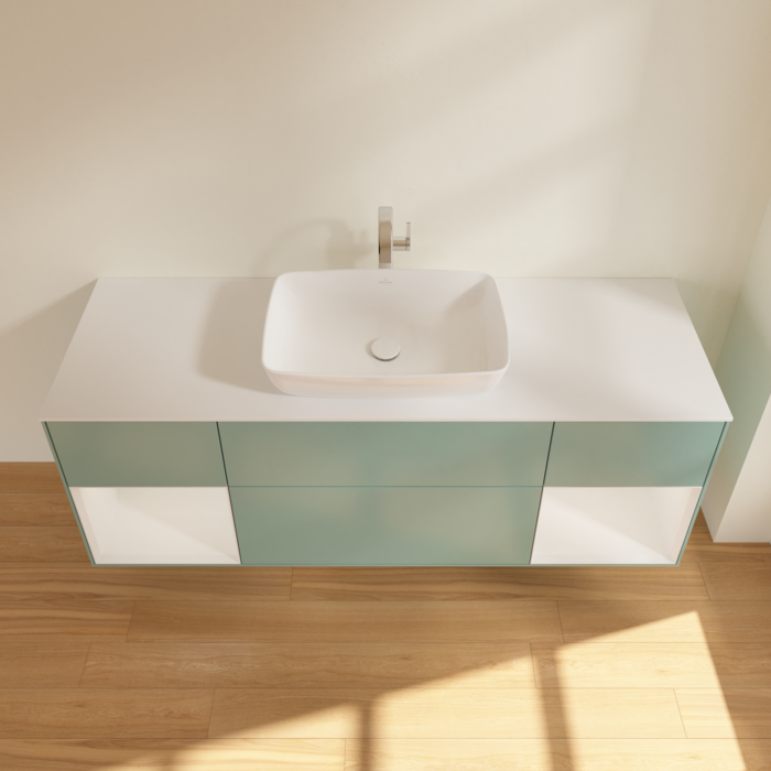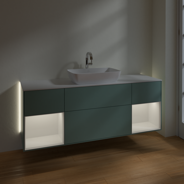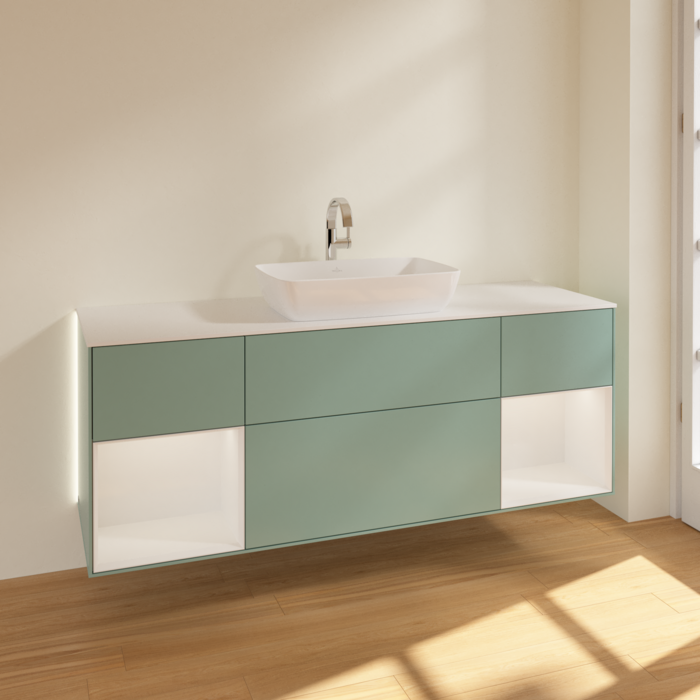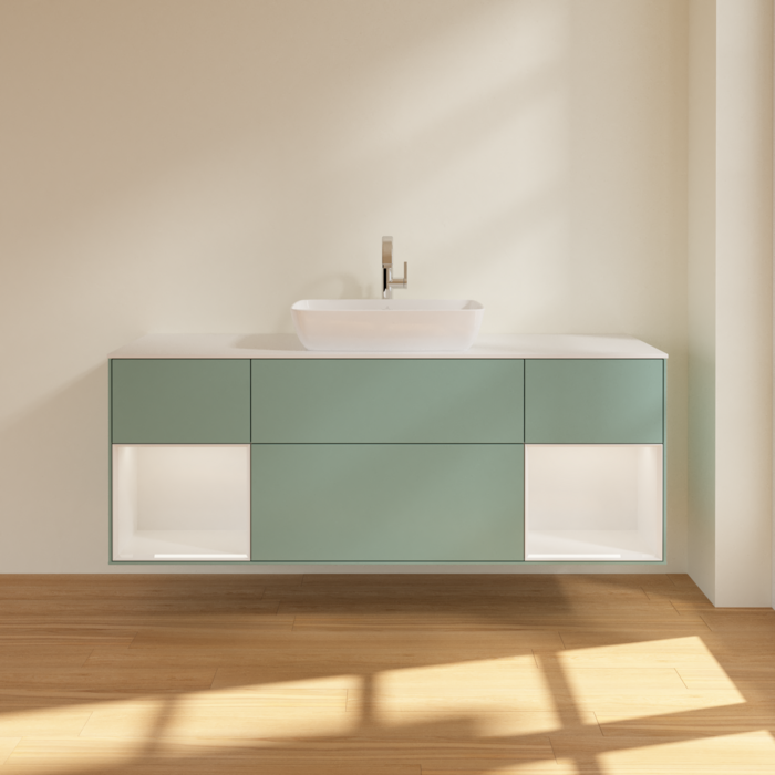 Тумба під раковину Villeroy & Boch Finion 160х50,1 см із підсвічуванням МДФ оливковий матовий лак/скло біле матове G861GFGM