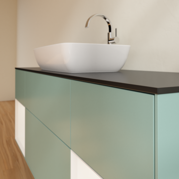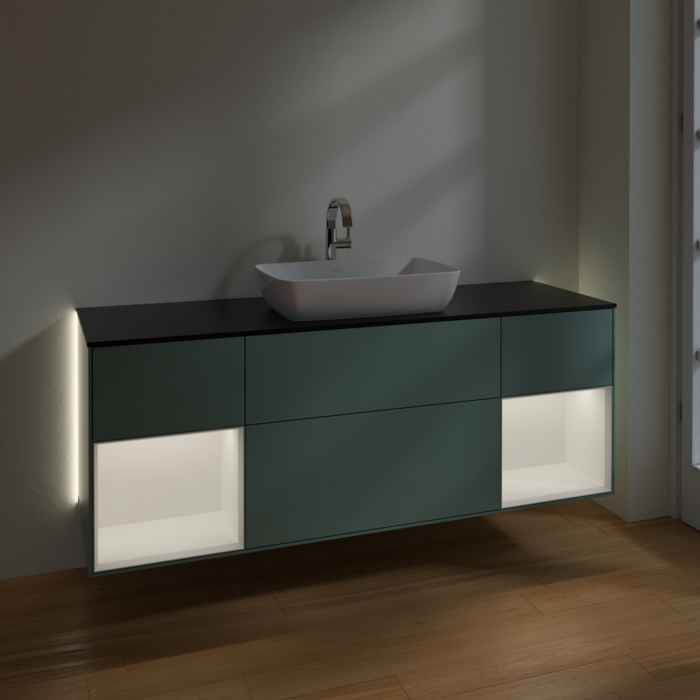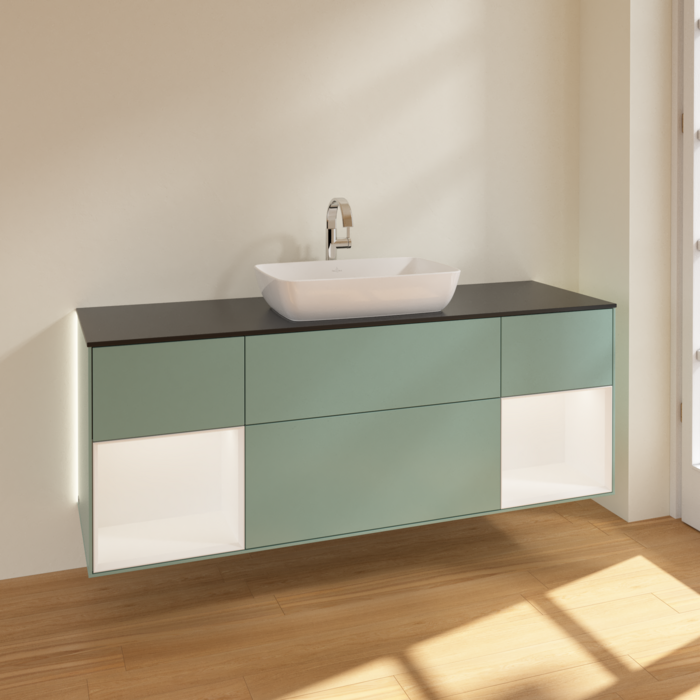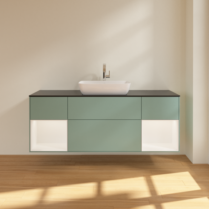 Тумба під раковину Villeroy & Boch Finion 160х50,1 см із підсвічуванням МДФ оливковий матовий лак/скло чорне матове G862MTGM