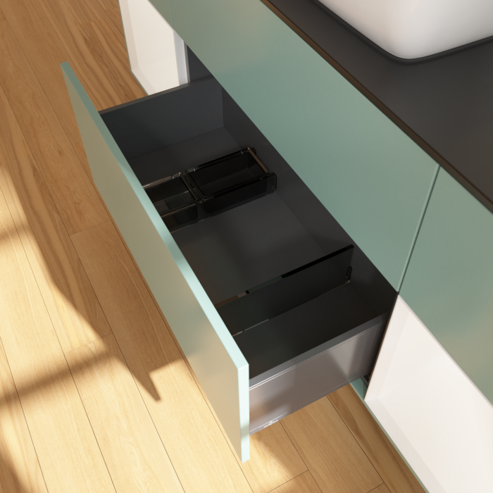 практичні внутрішні розділи. подані внутрішні перегородки у ванних кімнатах для влаштувань та Boch можуть індивідуально підтримувати замовлення у ванній кімнаті. Різні елементи, такі як регульоване склоПерегородки та коробки для аксесуарів різного розміру забезпечують порядок та хороший огляд. Завдяки практичним внутрішнім розділам ви можете знайти часто використовувані аксесуари для ванної кімнати на перший погляд.