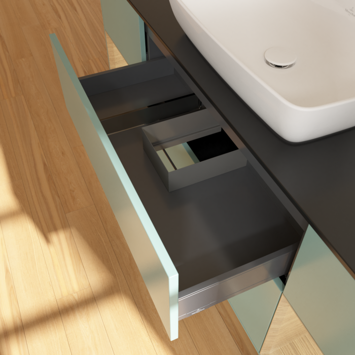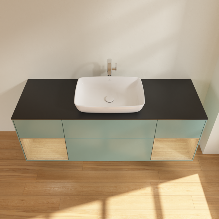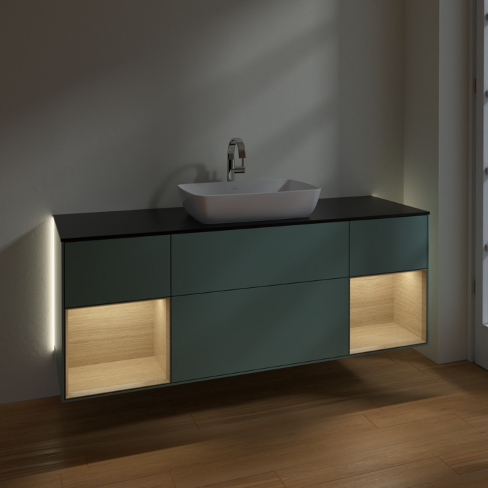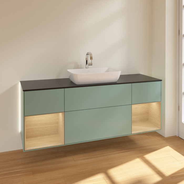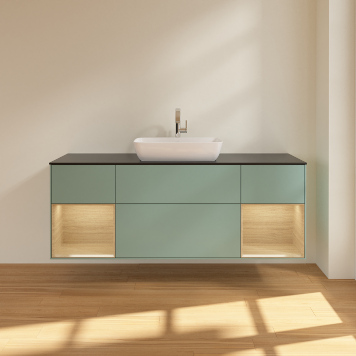 Тумба під раковину Villeroy & Boch Finion 160х50,1 см із підсвічуванням МДФ оливковий матовий лак/скло чорне матове G862PCGM
