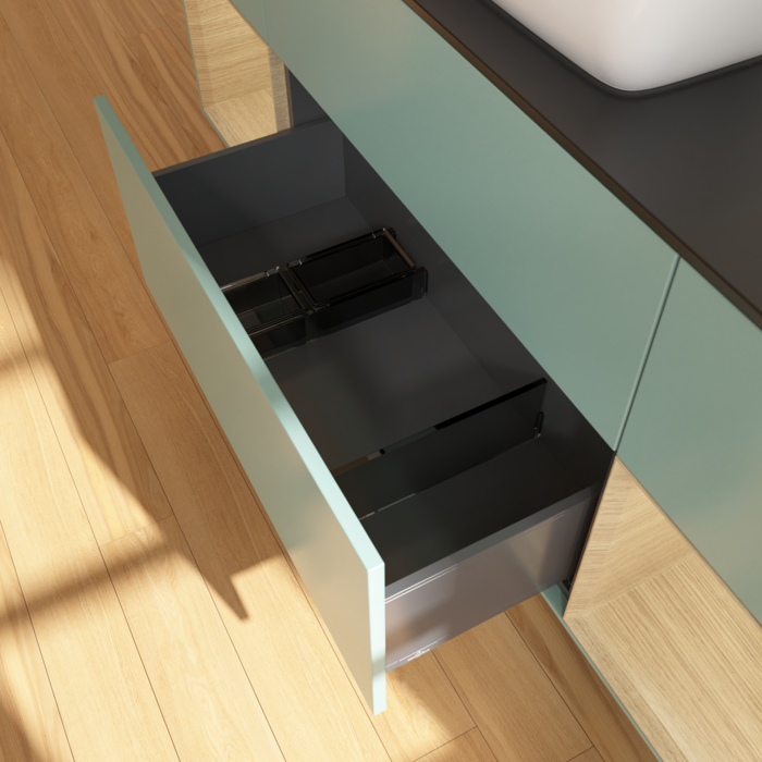 4 ящики (1 перегородка з високим склом, 3 перегородки з низьким рівнем скла, 1Контейнер для аксесуарів S, 1 контейнер для аксесуарів M, 2 Вилрані відсіки з килимком анти -слизу)