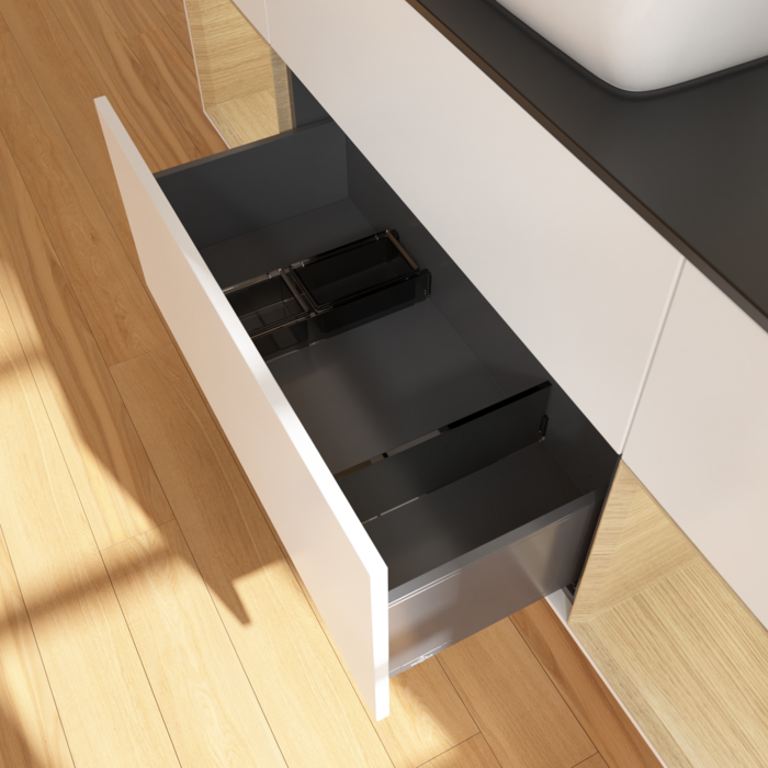 практичні внутрішні розділи. подані внутрішні перегородки у ванних кімнатах для влаштувань та Boch можуть індивідуально підтримувати замовлення у ванній кімнаті. Різні елементи, такі як регульовані скляні розділи та коробки дляАксесуари різних розмірів, надайте порядок та хороший огляд. Завдяки практичним внутрішнім розділам ви можете знайти часто використовувані аксесуари для ванної кімнати на перший погляд.