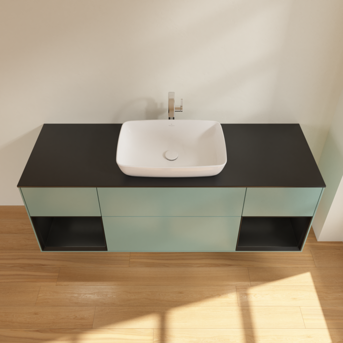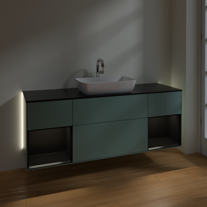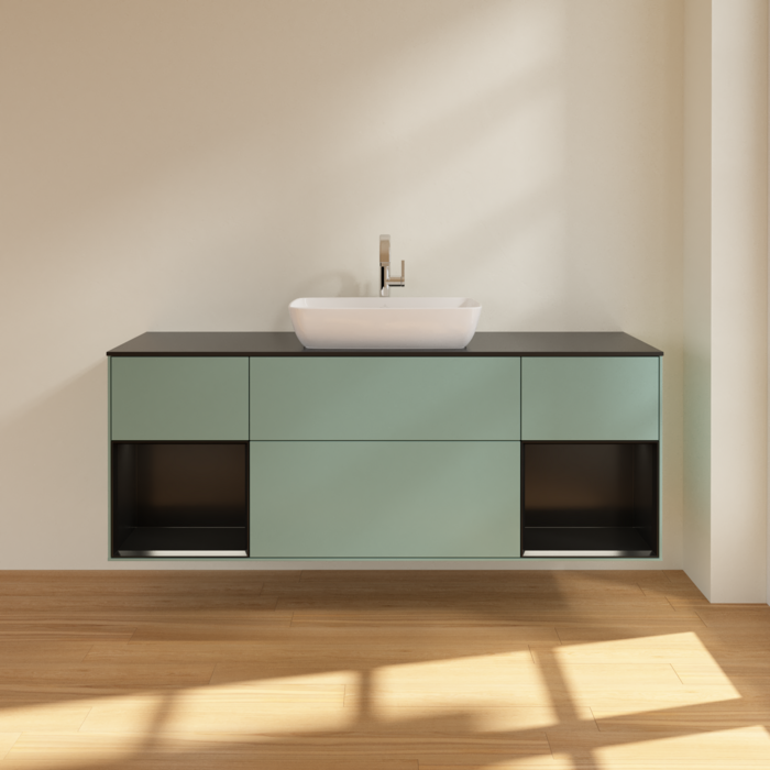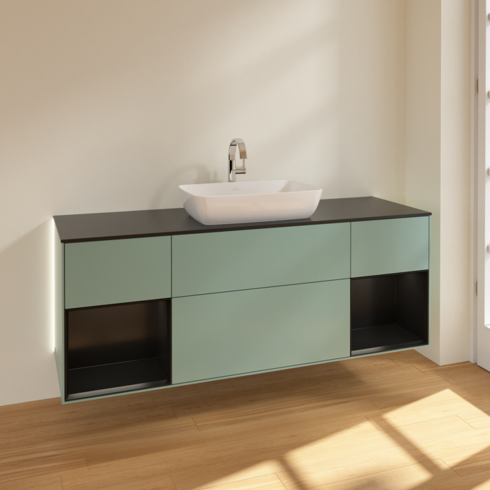 Тумба під раковину Villeroy & Boch Finion 160х50,1 см із підсвічуванням МДФ оливковий матовий лак/скло чорне матове G862PDGM