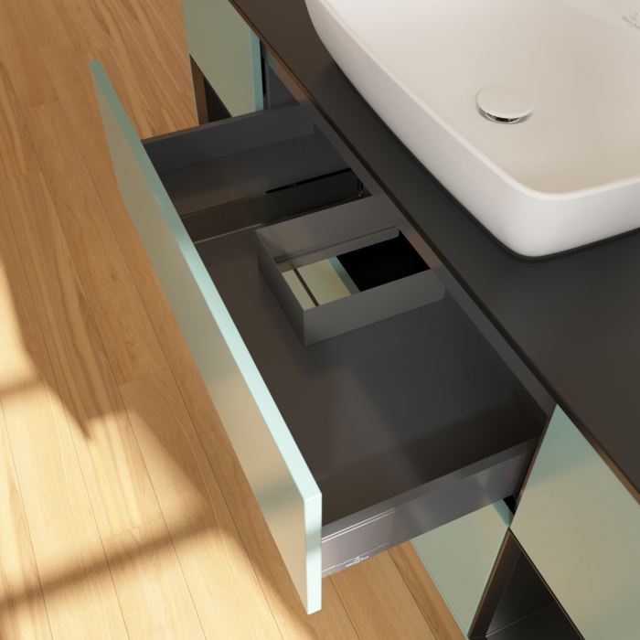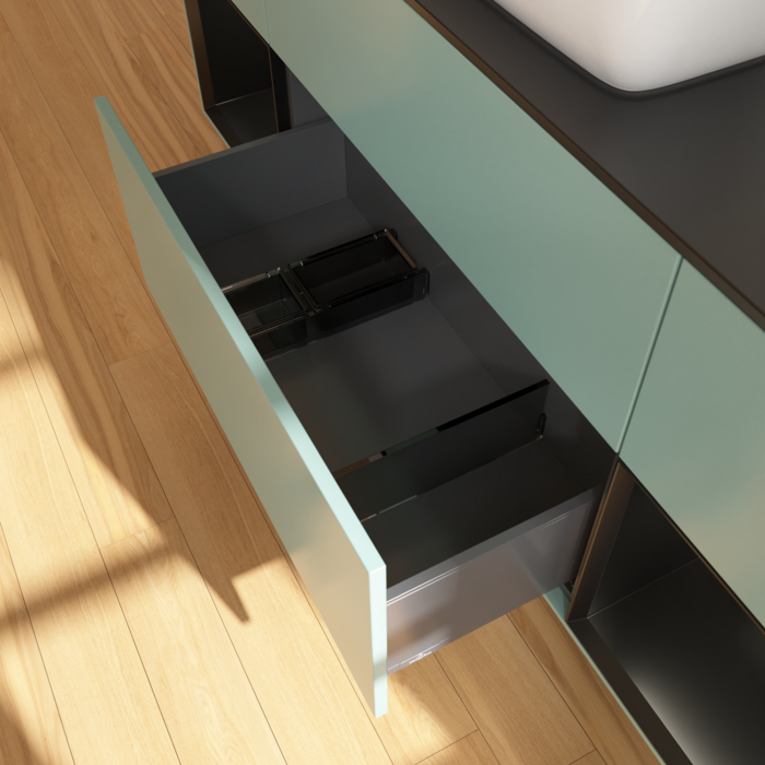 практичні внутрішні розділи. подані внутрішні перегородки у ванних кімнатах для влаштувань та Boch можуть індивідуально підтримувати замовлення у ванній кімнаті. Різні елементи, такі як регульоване склоПерегородки та коробки для аксесуарів різного розміру забезпечують порядок та хороший огляд. Завдяки практичним внутрішнім розділам ви можете знайти часто використовувані аксесуари для ванної кімнати на перший погляд.