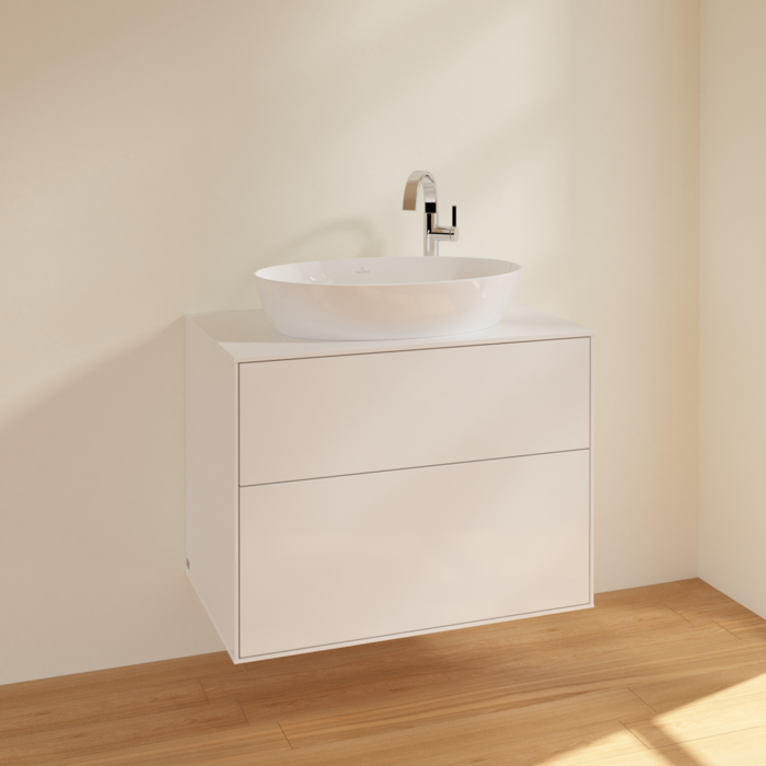Тумба під раковину Villeroy & Boch Finion 80х50,1 см МДФ білий глянцевий лак/скло біле матове F87100GF
