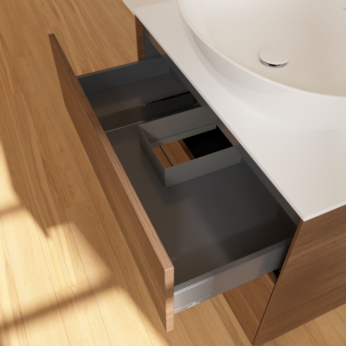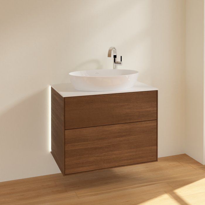 push-to-oceen technology-Для максимальної зручності . Технологія, що відбулася до відкритих, у меблях для ванної кімнати Villeroy & Boch робить ваше повсякденне життя неймовірно легким. Фасади без ручок виглядають особливо елегантно, і завдяки технології, що відштовхується, їх можна легко відкрити та закрити з мінімальним тиском.