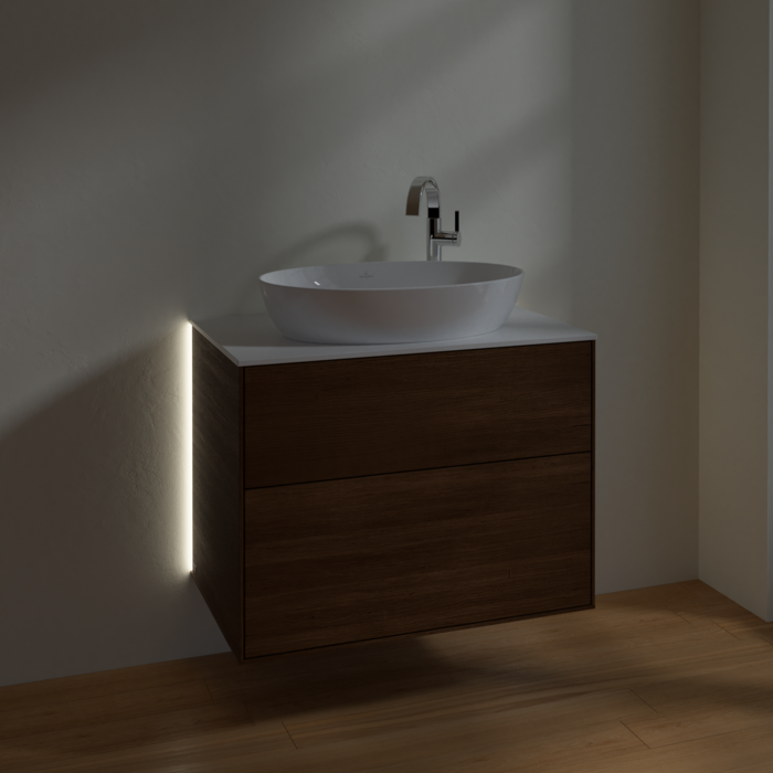 Тумба під раковину Villeroy & Boch Finion 80х50,1 см із підсвічуванням МДФ шпон волоського горіха/скло біле матове G87100GN