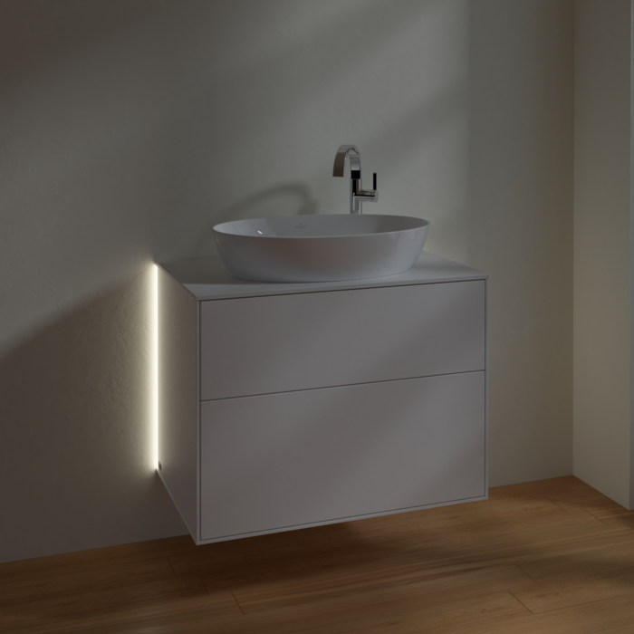 Тумба під раковину Villeroy & Boch Finion 80х50,1 см із підсвічуванням МДФ білий матовий лак/скло біле матове G87100MT