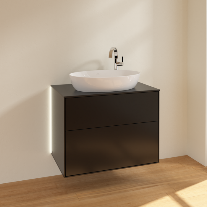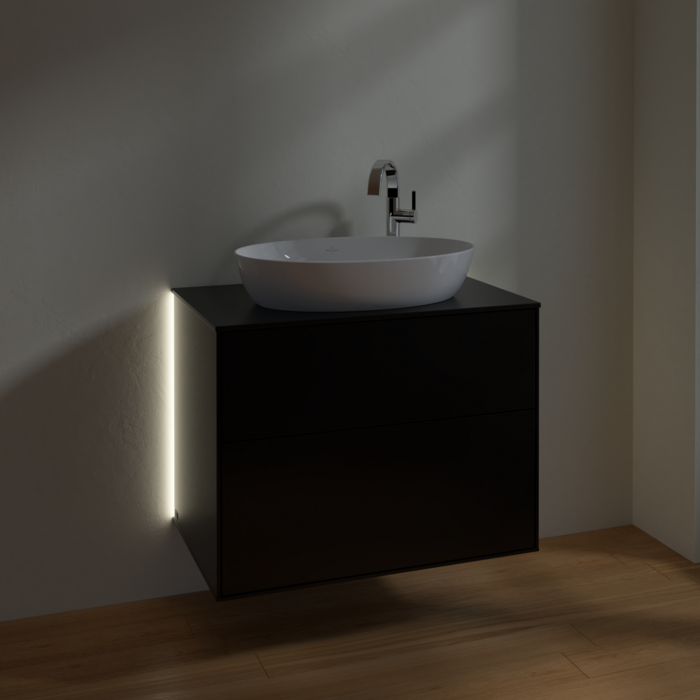 Тумба під раковину Villeroy & Boch Finion 80х50,1 см із підсвічуванням МДФ чорний матовий лак/скло чорне матове G87200PD