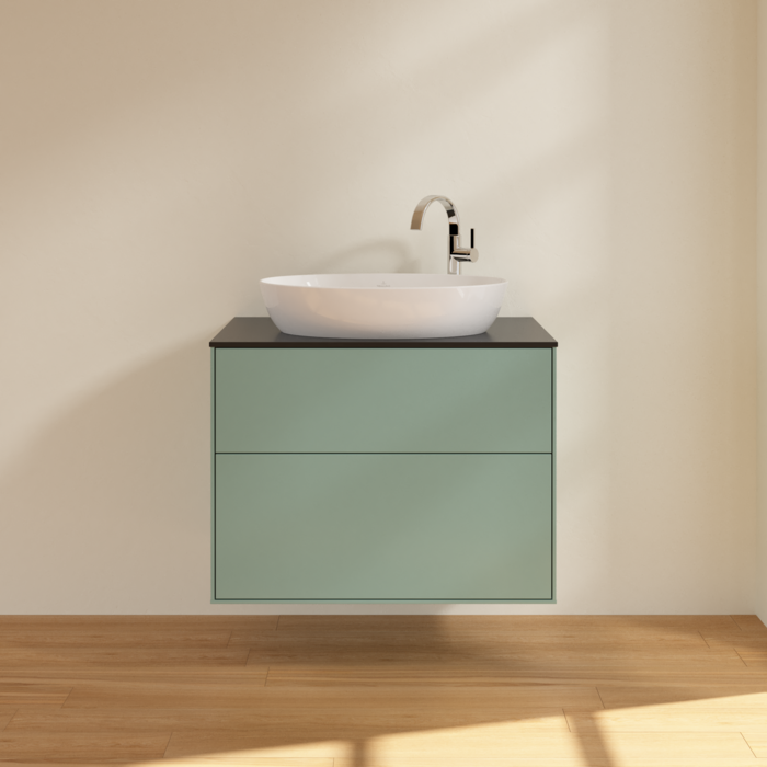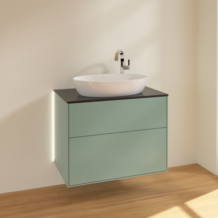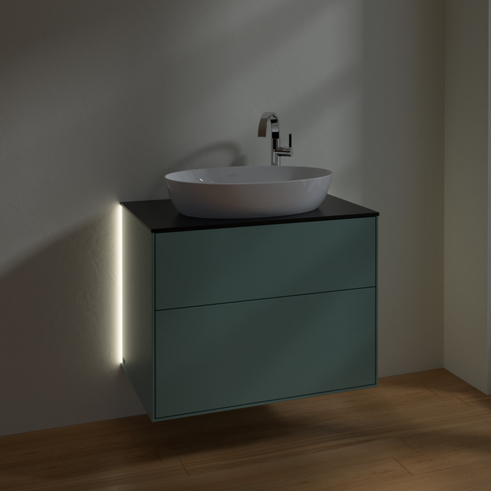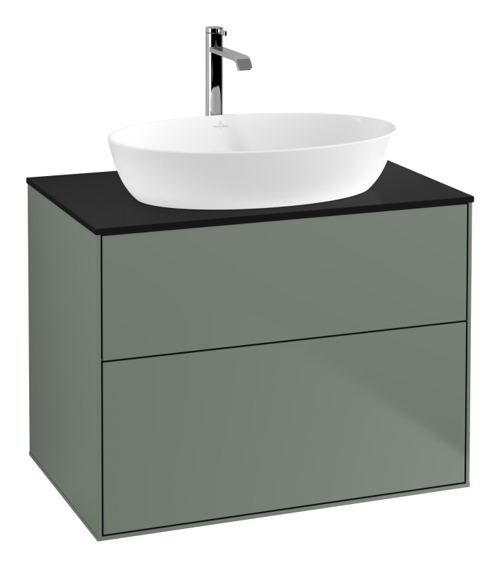 Тумба під раковину Villeroy & Boch Finion 80х50,1 см із підсвічуванням МДФ оливковий матовий лак/скло чорне матове G87200GM