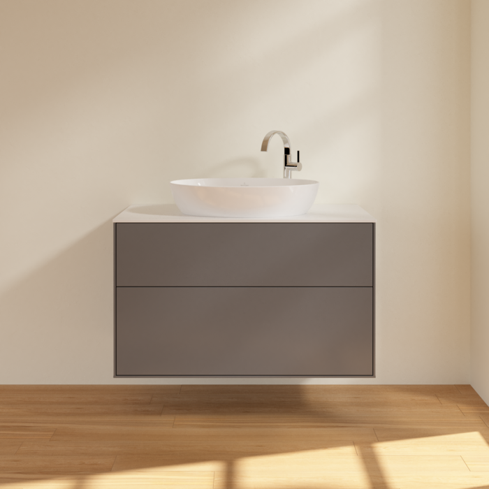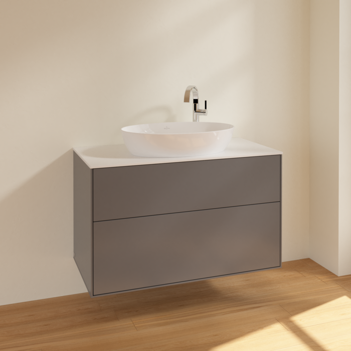 Тумба під раковину Villeroy & Boch Finion 100х50,1 см МДФ антрацит матовий лак/скло біле матове F88100GK