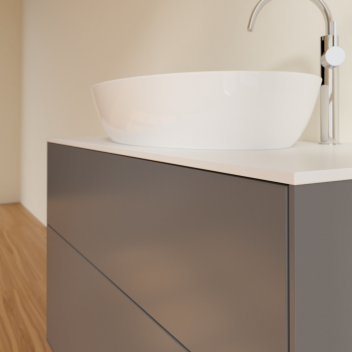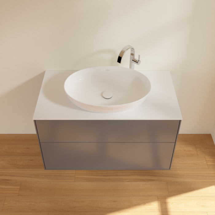 push-to-opeen Technology для максимальної зручності . Технологія, що відбулася до відкритих, у меблях для ванної кімнати Villeroy & Boch робить ваше повсякденне життя неймовірно легким. Фасади без ручок виглядають особливо елегантно, і завдяки технології, що відштовхується, їх можна легко відкрити та закрити з мінімальним тиском.