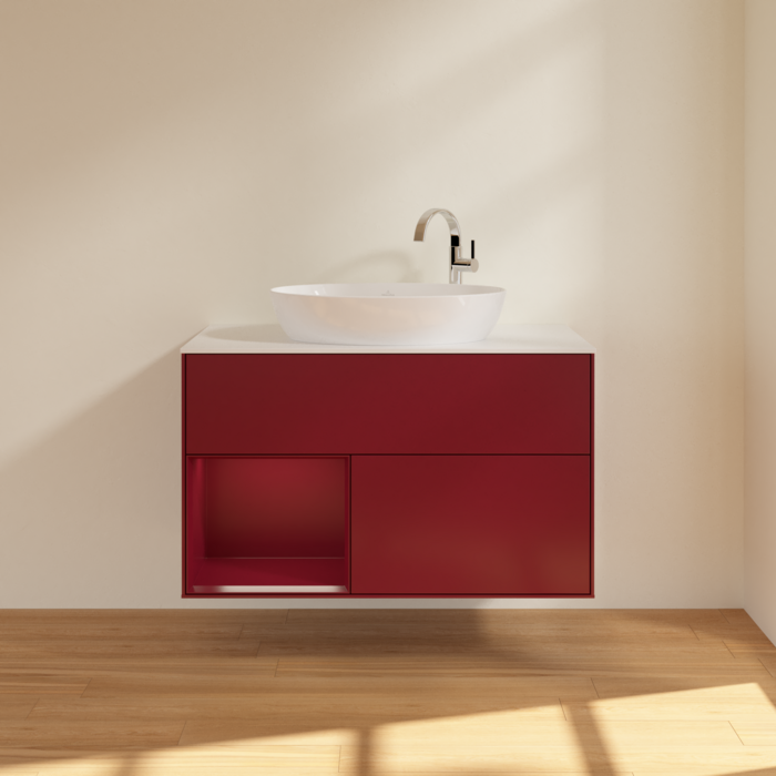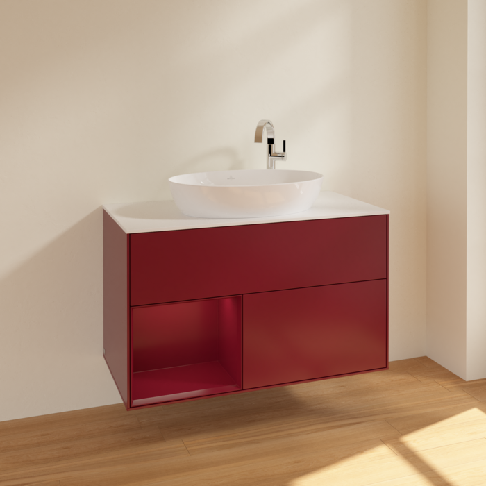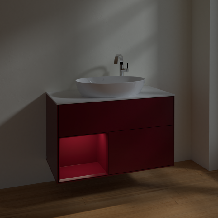 Тумба під раковину Villeroy & Boch Finion 100х50,1 см з підсвічуванням МДФ півонія матовий лак/скло біле матове F891HBHB