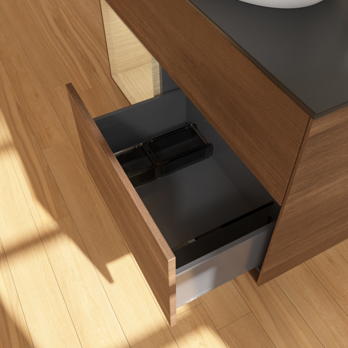 двері та коробки за допомогою механізму програмного розчину та пристрою саморегуляції. Сучасна технологія програмного розчину закриває коробки та двері плавно та обережно, навіть коли додаток потужності. Механізм м'якого розчинення уповільнює коробку коробки і автоматично закриває його, повільно і мовчки - він не тільки приємний для слуху, але й ретельно обробляє меблі для ванної кімнати.