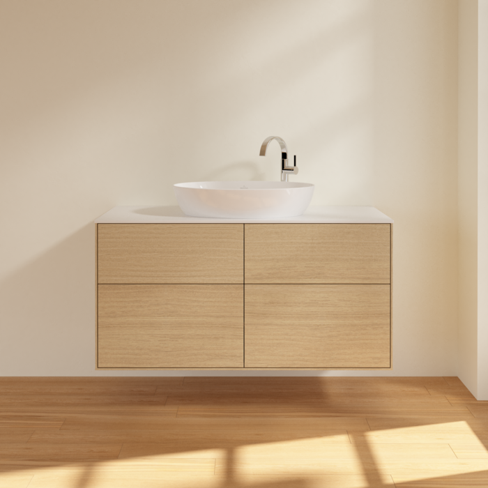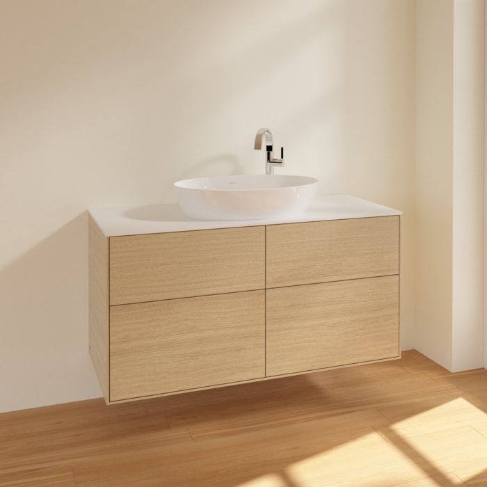 Тумба під раковину Villeroy & Boch Finion 120х50,1 см МДФ шпон дуба/скло біле матове F91100PC