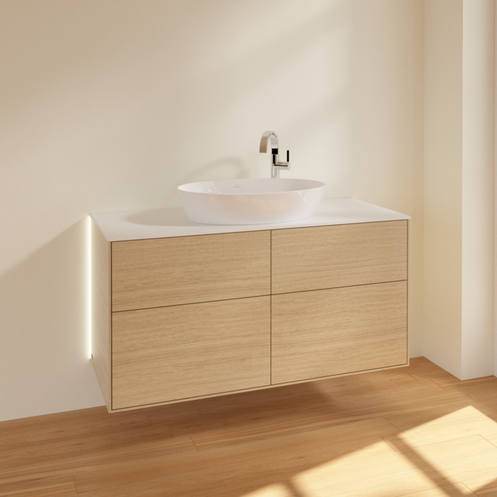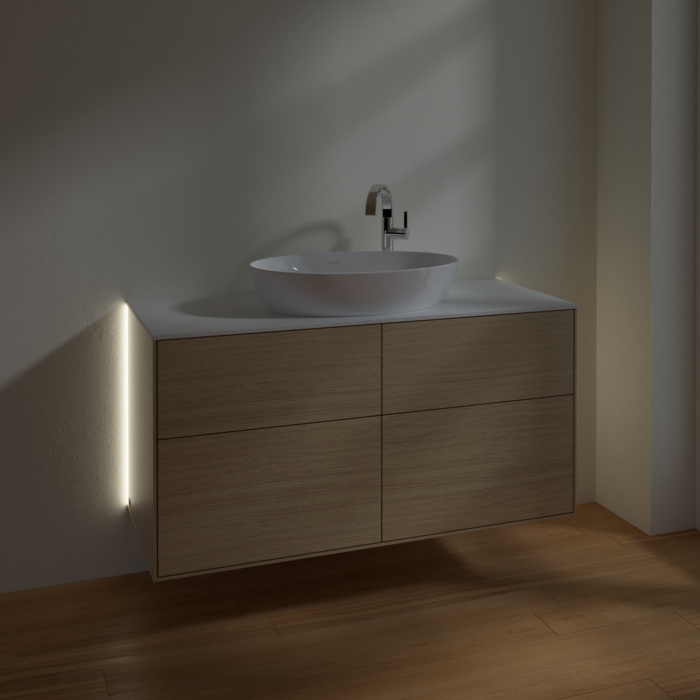 Тумба під раковину Villeroy & Boch Finion 120х50,1 см із підсвічуванням МДФ шпон дуба/скло біле матове G91100PC