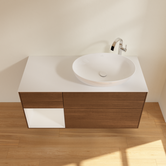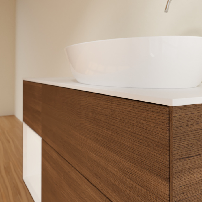 технологія push-to-over-for maximum зручність . Технологія, що відбулася до відкритих, у меблях для ванної кімнати Villeroy & Boch робить ваше повсякденне життя неймовірно легким. ФасадиБез ручок вони виглядають особливо вишуканими, і завдяки технології, що підштовхується до відкриття, їх можна легко відкрити та закрити з мінімальним тиском.