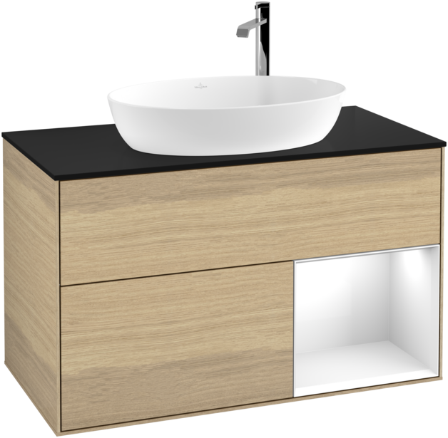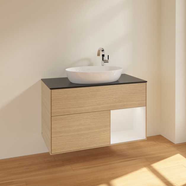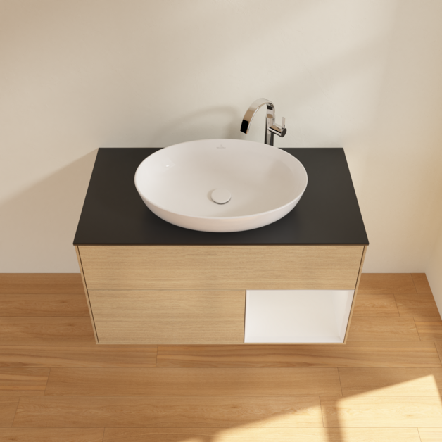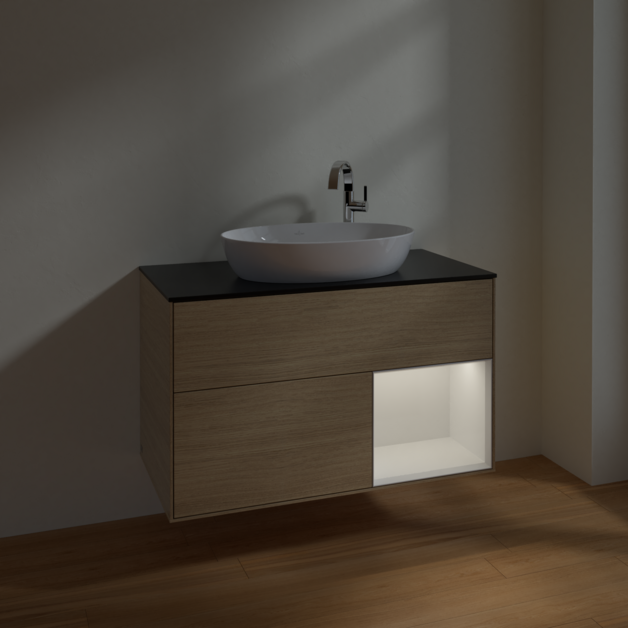 Тумба під раковину Villeroy & Boch Finion 100х50,1 см із підсвічуванням МДФ шпон дуба/скло чорне матове F902GFPC
