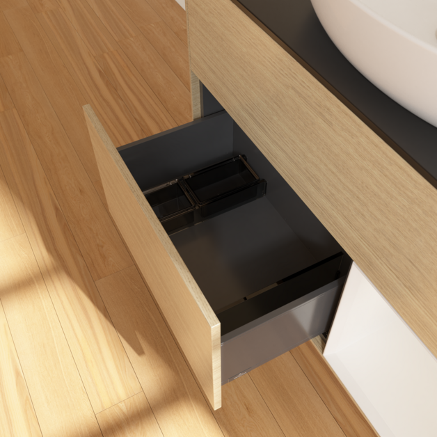 Свердловина -думка про внутрішнє розділення ванної кімнати Villeroy & Boch дозволяє створити індивідуальну систему організації місця у ванній кімнаті. Елементи, які можна змінити,Наприклад, регульовані скляні розділи та контейнери для аксесуарів різного розміру забезпечують хороший огляд та замовлення. Завдяки практичній системі внутрішнього розділення ви швидко знайдете аксесуари для ванної кімнати, якими ви постійно користуєтесь.