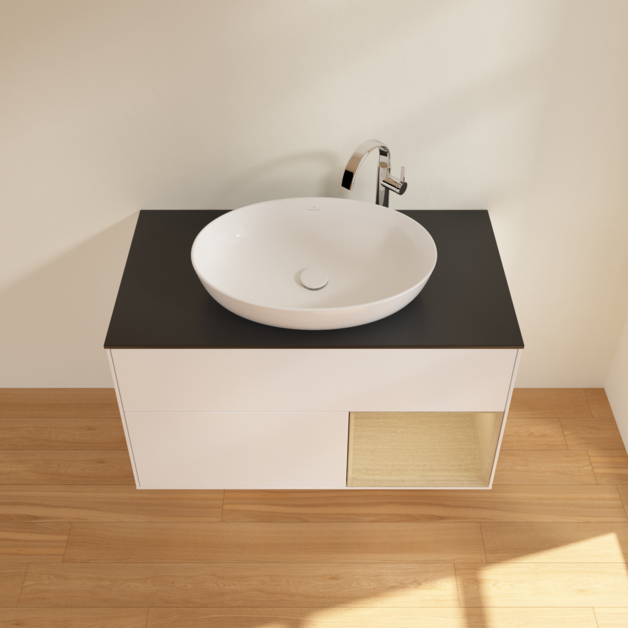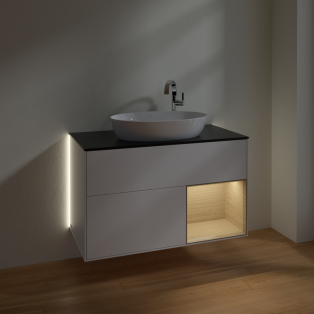 Тумба під раковину Villeroy & Boch Finion 100х50,1 см із підсвічуванням МДФ білий матовий лак/скло чорне матове G902PCMT