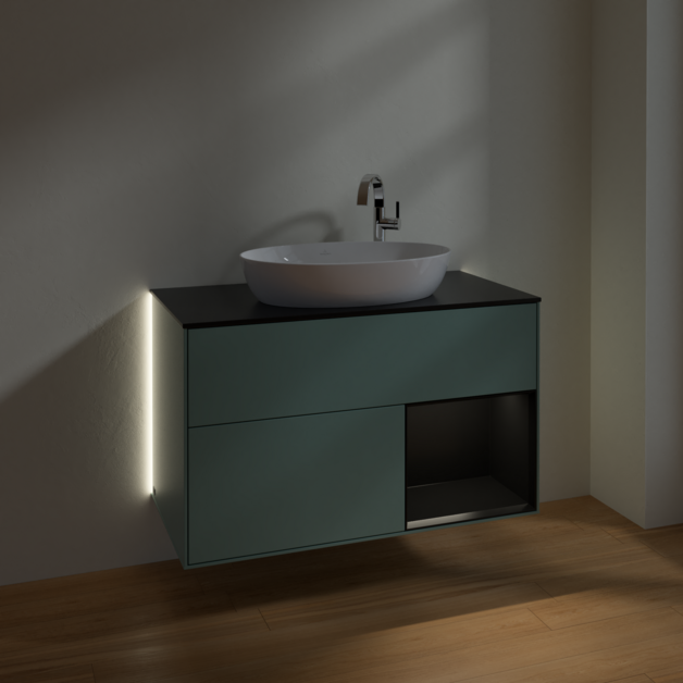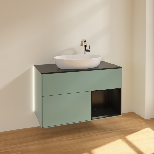 Тумба під раковину Villeroy & Boch Finion 100х50,1 см із підсвічуванням МДФ оливковий матовий лак/скло чорне матове G902PDGM