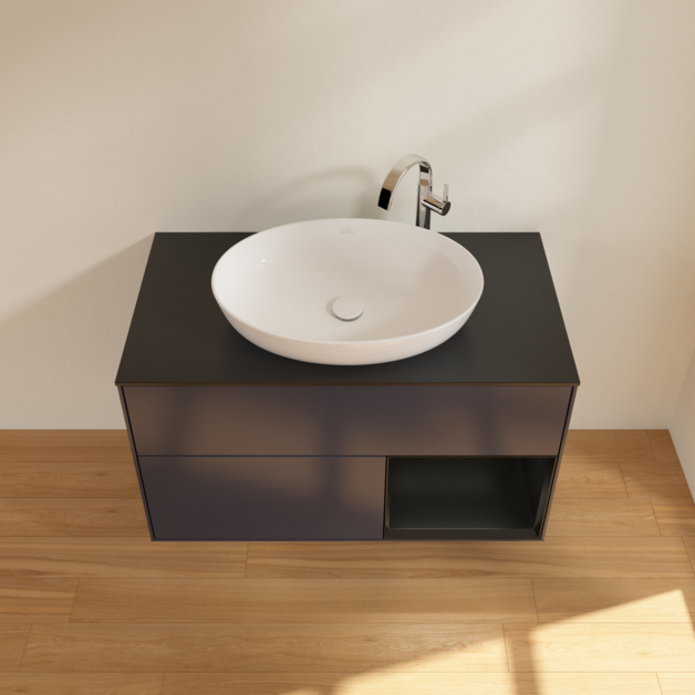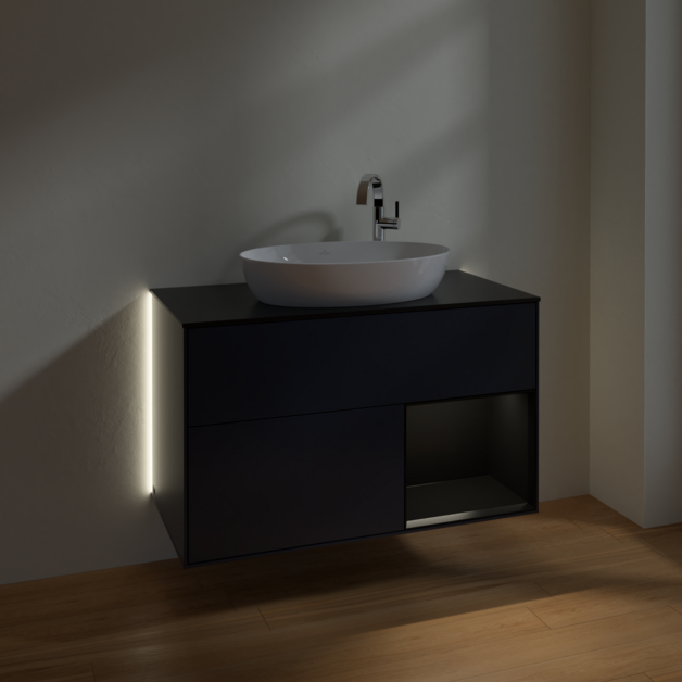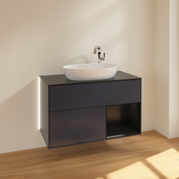 Тумба під раковину Villeroy & Boch Finion 100х50,1 см із підсвічуванням МДФ темно-синій матовий лак/скло чорне матове G902PDHG