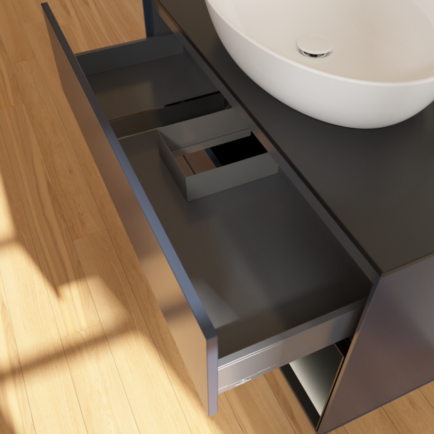 Добре -думка про внутрішнє розділення меблів для ванної кімнати Villeroy & Boch дозволяє створити індивідуальну систему організаціїПростори у ванній. Елементи, розташування яких можна змінити, наприклад, регульовані скляні розділи та контейнери для аксесуарів різного розміру, забезпечують хороший огляд та порядок. Завдяки практичній системі внутрішнього розділення ви швидко знайдете аксесуариванна кімната, якою ви постійно користуєтесь.