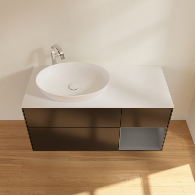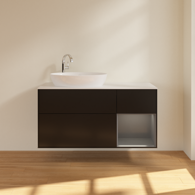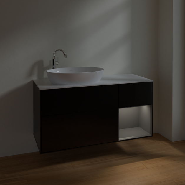 Тумба під раковину Villeroy & Boch Finion 120х50,1 см із підсвічуванням МДФ чорний матовий лак/скло біле матове F931GKPD