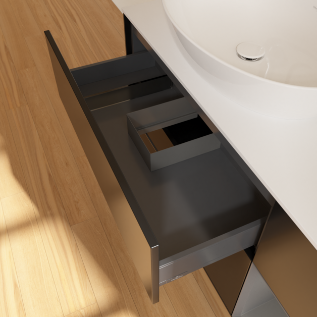 Використовуючи механізм, що натискає на відкриття, меблі Villeroy & Boch значно полегшать ваше повсякденне життя. Фасади без ручок створюють надзвичайно благородний вигляд і легко відкриваються та закриваються одним пресом за допомогоюМеханізм натискання на відкритості. Насолоджуйтесь максимальним комфортом у ванній!