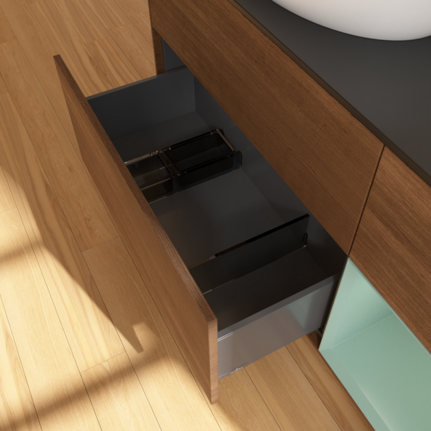 Використовуючи механізм, що натискає на відкриття, меблі Villeroy & Boch значно полегшать ваше повсякденне життя. Фасади без ручок створюють надзвичайно благородний вигляд і легко відкриваються та закриваються одним пресом за допомогою механізмуПуск до відкриття. Насолоджуйтесь максимальним комфортом у ванній!
