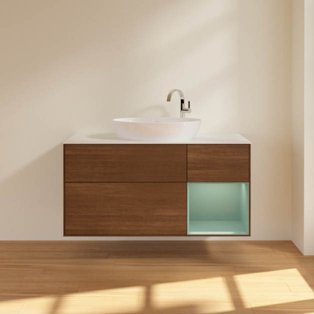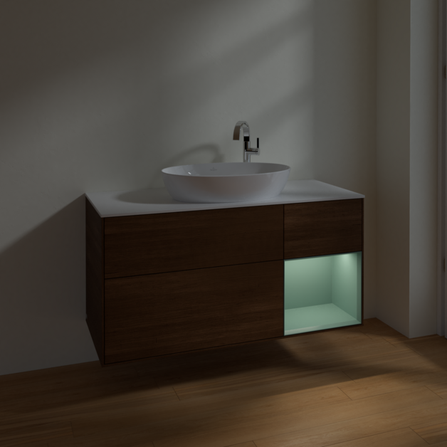 Тумба під раковину Villeroy & Boch Finion 120х50,1 см із підсвічуванням МДФ шпон волоського горіха/скло біле матове F951GMGN