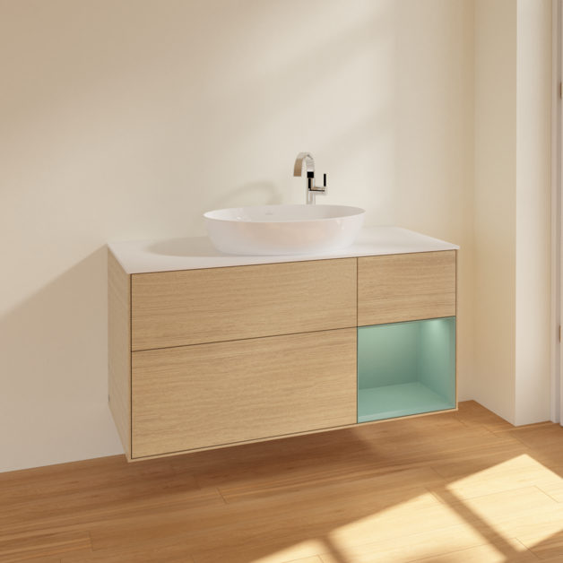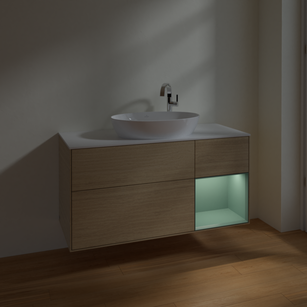 Тумба під раковину Villeroy & Boch Finion 120х50,1 см із підсвічуванням МДФ шпон дуба/скло біле матове F951GMPC
