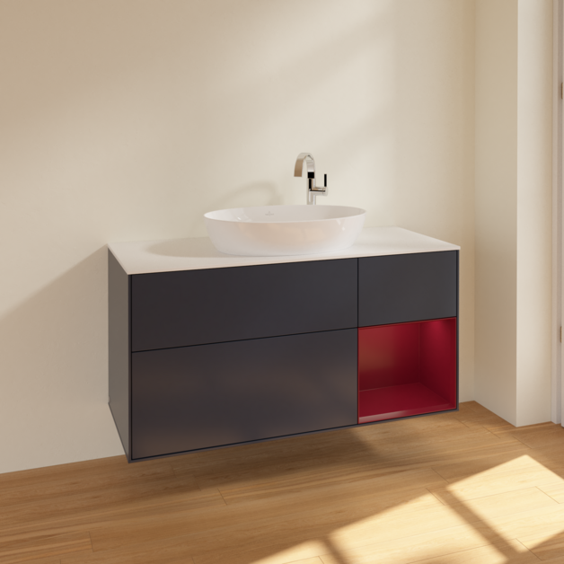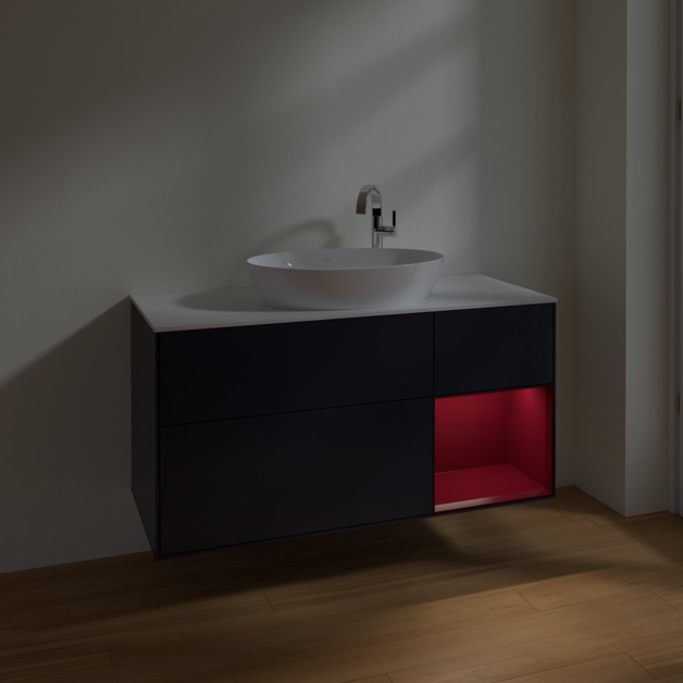 Тумба під раковину Villeroy & Boch Finion 120х50,1 см із підсвічуванням МДФ темно-синій матовий лак/скло біле матове F951HBHG