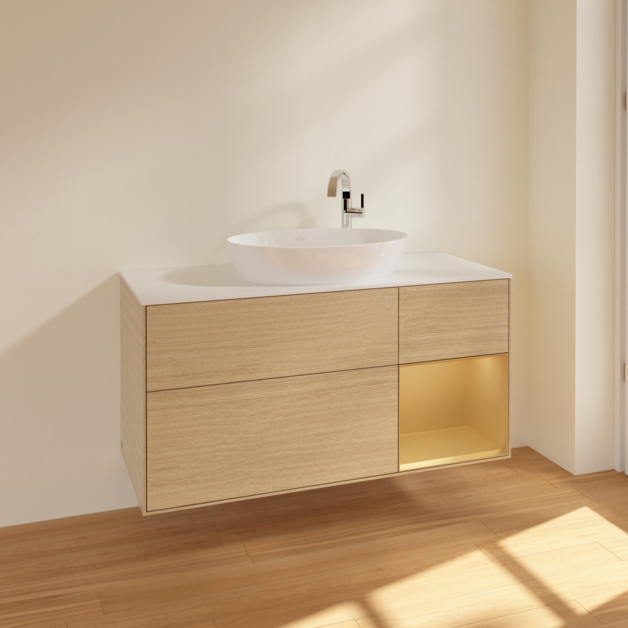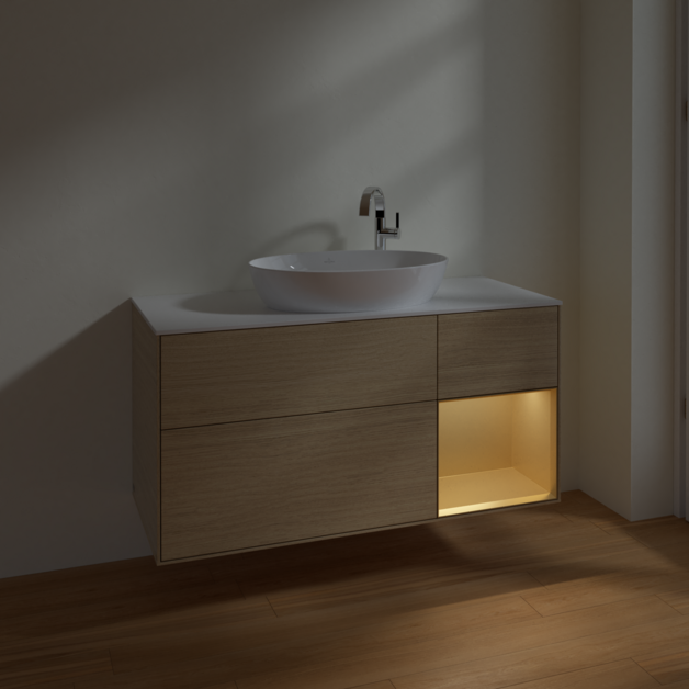 Тумба під раковину Villeroy & Boch Finion 120х50,1 см із підсвічуванням МДФ шпон дуба/скло біле матове F951HFPC