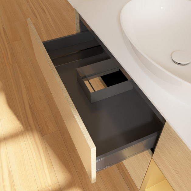Використовуючи механізм, що натискає на відкриття, меблі Villeroy & Boch значно полегшать ваше повсякденне життя. Фасади без ручок створюють надзвичайноШляхетний вигляд і легко відкривається та закриває один прес за допомогою механізму, що натискає на відкриття. Насолоджуйтесь максимальним комфортом у ванній!
