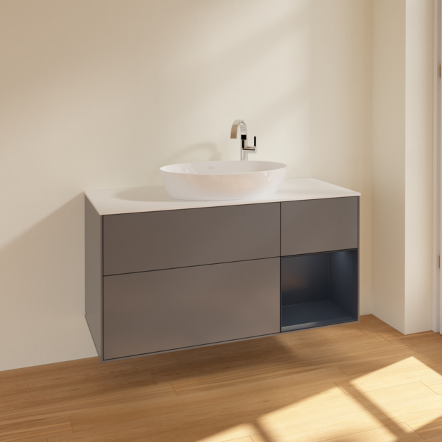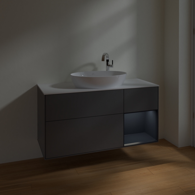 Тумба під раковину Villeroy & Boch Finion 120х50,1 см з підсвічуванням антрацит матовий лак/скло біле матове F951HGGK