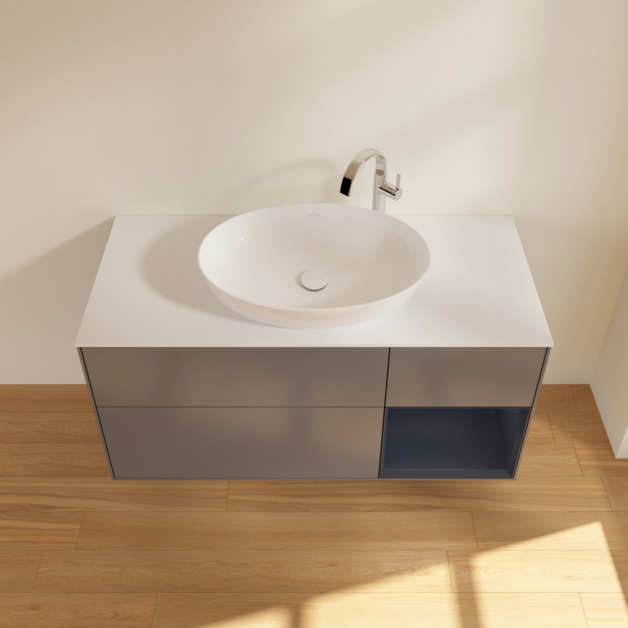 Експресивний дизайн та вишукане обладнання - Колекція меблів для ванних кімнат Villeroy & Boch Finion ідеально підходить. Створюється одна система підсвічування меблівПевна атмосфера у вашій ванній кімнаті, а також модульні полиці та шафи різних кольорів забезпечують його індивідуальність. Меблі для ванної кімнати з колекції Villeroy & Boch Finion з товстими стінамиЛише 8 мм підкреслює стислість дизайну.