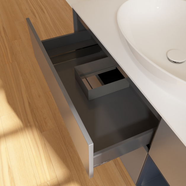 Свердловина -продумане внутрішнє розділення ванної кімнати Villeroy & Boch дозволяє створити індивідуальну систему організації місця у ванній кімнаті. Елементи, розташування яких можна змінити, наприклад, регульоване склоПерегородки та контейнери для аксесуарів різного розміру забезпечують хороший огляд та порядок. Завдяки практичній системі внутрішнього розділення, ви швидко знайдете аксесуари для ванної кімнати, які ви постійноВикористання.
