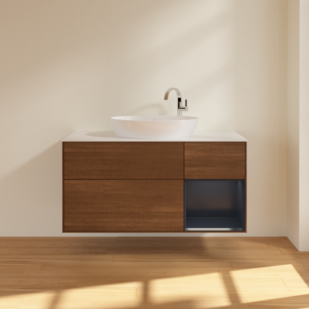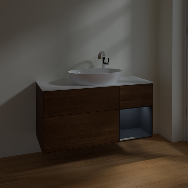 Тумба під раковину Villeroy & Boch Finion 120х50,1 см із підсвічуванням МДФ шпон волоського горіха/скло біле матове F951HGGN