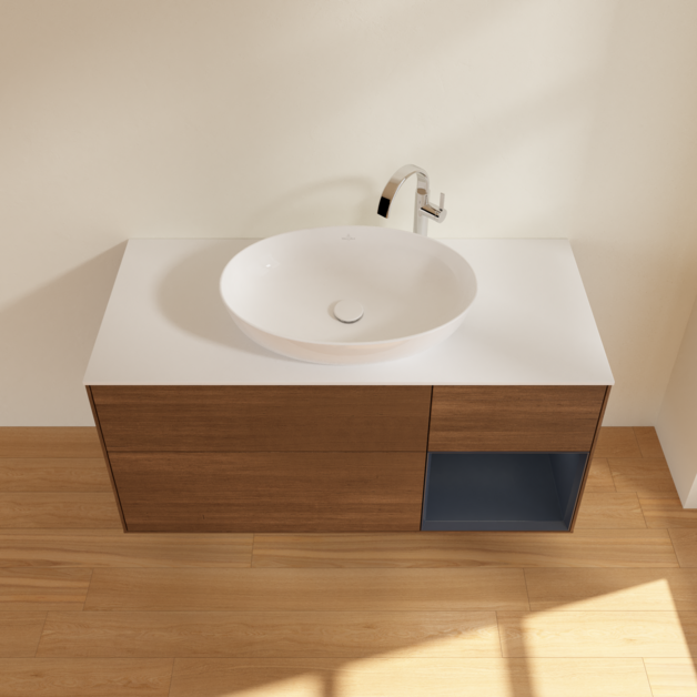 Експресивний дизайн та вишукане обладнання - Колекція меблів для ванних кімнат Villeroy & Boch Finion ідеально підходить. Створюється одна система підсвічування меблівПевна атмосфера у вашій ванній кімнаті, а також модульні полиці та шафи різних кольорів забезпечують його індивідуальність. Меблі для ванної кімнати з колекції Villeroy & Boch Finion з товстими стінамиЛише 8 мм підкреслює стислість дизайну.