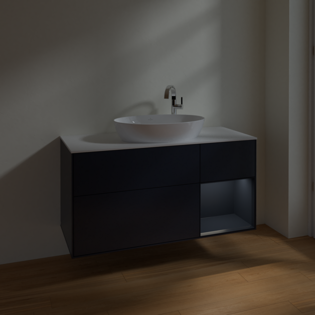 Тумба під раковину Villeroy & Boch Finion 120х50,1 см із підсвічуванням МДФ темно-синій матовий лак/скло біле матове F951HGHG