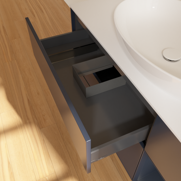 Свердловина -думка про внутрішнє розділення ванної кімнати Villeroy & Boch дозволяє створити індивідуальну систему організації місця у ванній кімнаті. Елементи, розташування яких можна змінити, наприклад, регульоване склоПерегородки та контейнери для аксесуарів різного розміру забезпечують хороший огляд та порядок. Завдяки практичній системі внутрішнього розділення, ви швидко знайдете аксесуари для ванної кімнати, які ви постійноВикористання.