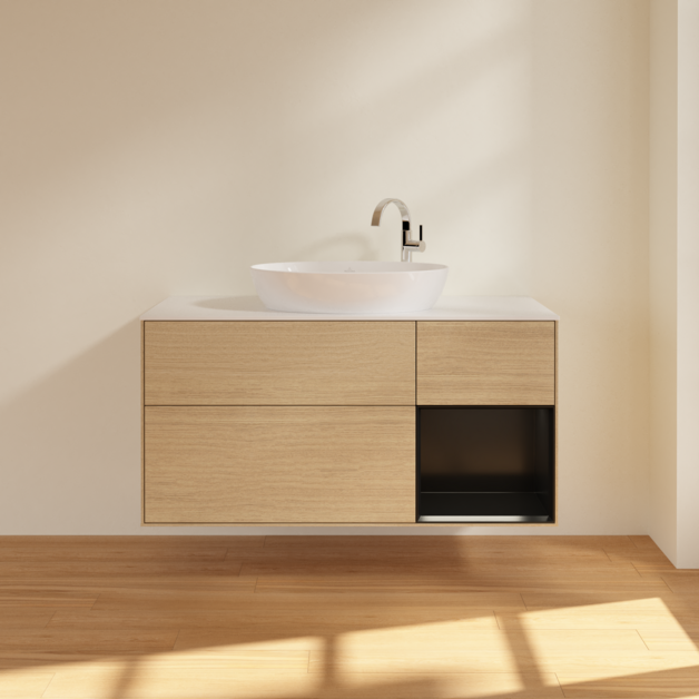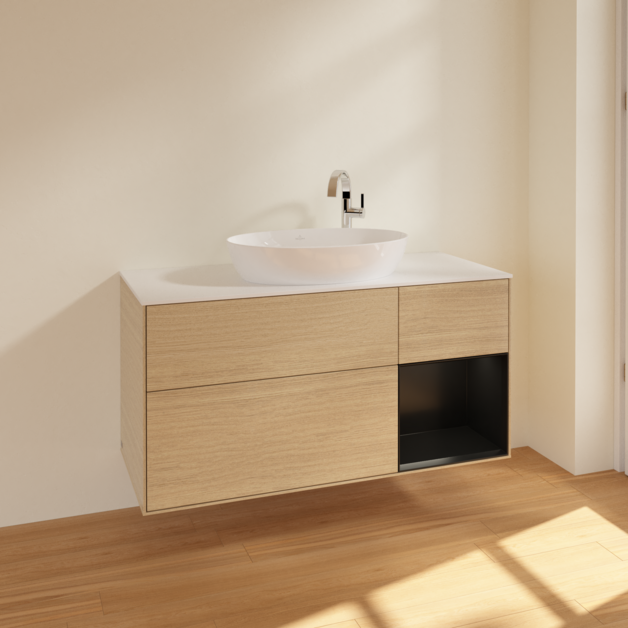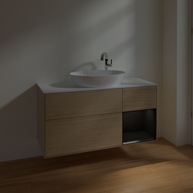 Тумба під раковину Villeroy & Boch Finion 120х50,1 см із підсвічуванням МДФ шпон дуба/скло біле матове F951PDPC