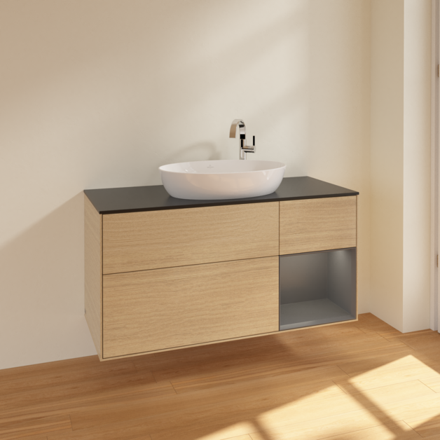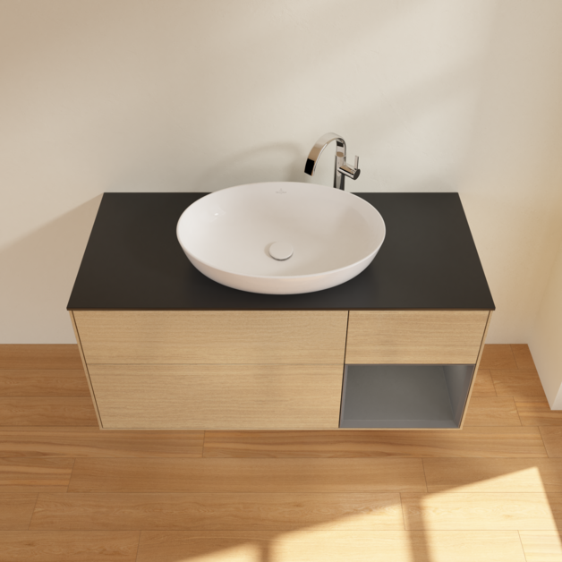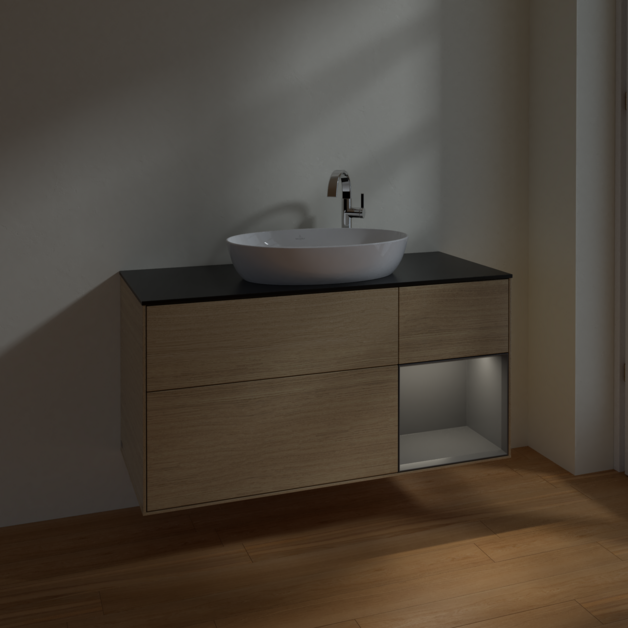 Тумба під раковину Villeroy & Boch Finion 120х50,1 см з підсвічуванням МДФ шпон дуба/скло чорне матове F952GKPC